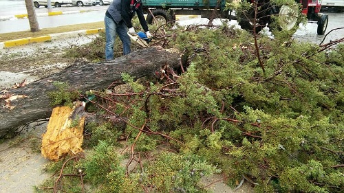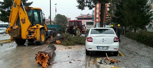 Devrilen ağaç Belediye ekipleri tarafından kaldırıldı.
