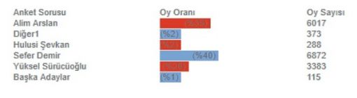Bir hafta süren “Acıpayam’da önümüzdeki dönemde kimi Belediye Başkanı olarak görmek istersiniz” sorusu ile düzenlenen ankette 5 isim yer aldı.