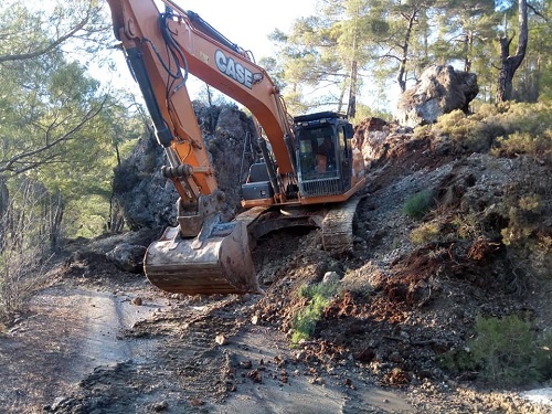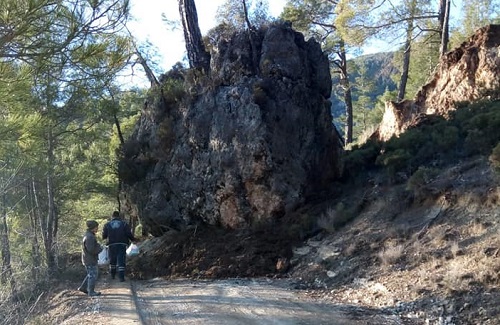 Bölge halkının ihbarı üzerine kısa sürede olay yerine ulaşan Acıpayam Belediyesi Fen İşleri Ekibi yolu kapatan kaya parçasını iş makinesi ile kaldırdı.