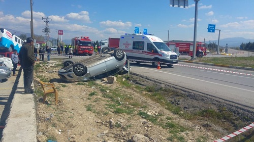 Kaza sonrası otomobil savrularak ters döndü.