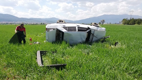 Kontrolden çıkan otomobil savrularak takla attı ve ekin tarlasında düştü.