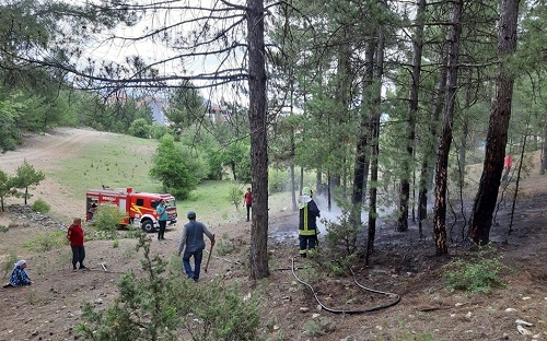 Acıpayam Çamlık Mahallesinde ağaçlık alanda çıkan yangına itfaiyenin erken müdahalesi sonucu büyümeden söndürüldü.