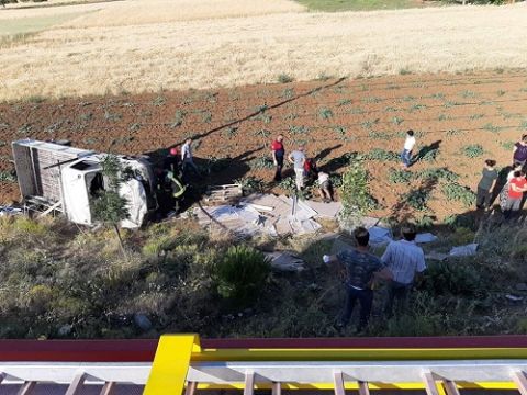 Kontrolden çıkan kamyonet savrularak şarampole devrildi. Meydana gelen kazada araç sürücüsü ve yanındaki iki kişi yaralandı.