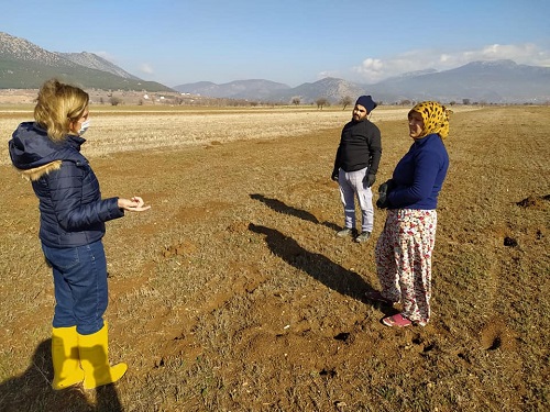 Sahada araştırma yapan ekipler çiftçilere de bilgilendirmede bulundu.