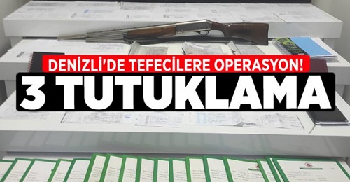 Denizli Emniyet Müdürlüğü Ekipleri tarafından Çameli ilçesinde Tefecilere operasyon düzenledi. Operasyonda gözaltına alınan 3 kişi tutuklandı.