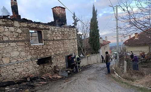 Olay yerine gelen itfaiye ekipleri yanan evi söndürmek için mücadele verdiler.