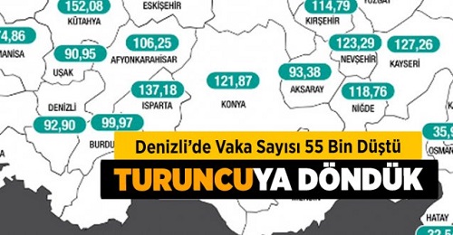 Denizli'de bu rakamla birlikte kırmızı kategoriden turuncu kategoriye geçiş yaptı.