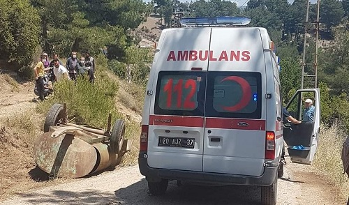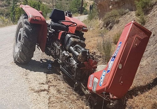 Edinilen bilgilere göre, İsmail Emik idaresindeki, arkasında su tankeri olan traktör meyilli yoldan aşağı ilerlediği sırada kontrolden çıktı.