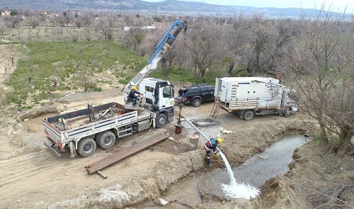Açılan içme suyu sondaj kuyusundan alınan su numunesinin İnsani Tüketim Amaçlı Sular Hakkında Yönetmeliğe göre analizlerinin yapılmasının ardından, iletim hatlarına bağlantıları yapılarak vatandaşların tüketimine sunuldu.