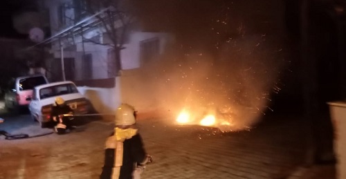 İhbar üzerine kısa sürede olay yerine intiakal eden itfaiye ekibi yanmakta olan otomobili sündürdü ve soğutma çalışması yaptı.