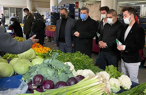 İl Başkanı Aykut Yıldıırm, İlçe Başkanı Ümit Oduncu ve yönetim kurulu üyeleri Acıpayam Salı Pazarında Pazarcı esnafını ziyaret ederek görüş alışverişinde bulunurken vatandaşların dertlerini dinlediler.