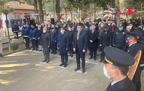 Buradaki program İlçe protokolü , şehit ve gazi yakınlarının şehitlerin mezarlarına karanfil bırakması ile sona erdi.