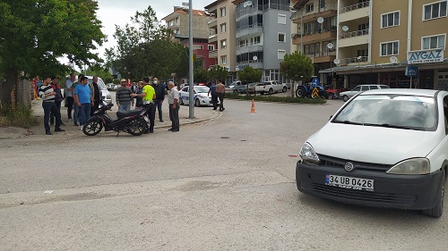 Edinilen bilgilere göre, R.A. idaresindeki 34 UB 0426 plakalı otomobil ile O.T. idaresindeki 20 AGN 240 plakalı motorsiklet Sanayi girişinde çarpıştı.