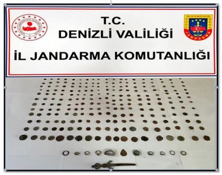 Denizli İl Jandarma Komutanlığınca, Acıpayam İlçesinde İcra edilen operasyon neticesinde; (1) otomobilde yapılan aramada Roma ve Bizans dönemine ait (228) adet sikke, etnoğrafik döneme ait (1) adet bıçak, (9) adet yüzük, (1) adet bileklik ve (1) adet kolye ele geçirilmiştir.