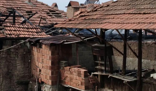 Evlerin bitişik olması nedeniyle sıkıntılı dakikalar yaşanırken yanan ev kullanılamaz hale gelirken bir evde de hasar meydana geldi.