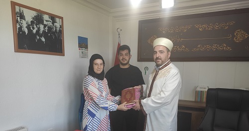 Müftü Sözen, Aliya’ya İslam dininin temel esasları ile ilgili bilgiler vererek “İhtida Belgesi” ile birlikte Diyanet İşleri Başkanlığı yayınlarından Kur’an-ı Kerim ve İslam dini hakkında çeşitli kitaplar hediye ederek İslam Dinini seçtiği için kendisini tebrik etti.