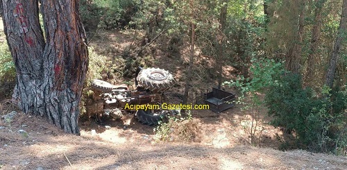 Acıpayam'da meydana gelen traktör kazasında bir kişi hayatını kaybederken iki kişide yaralandı.