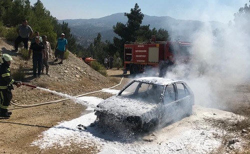 Seyir halinde olan otomobilden bir anda alevlerin yükselmesiyle birlikte başlayan yangın için itfiyeye haber verildi.
