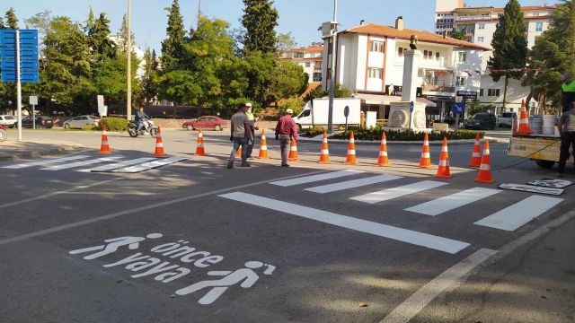 Daha önce de haber yaptığımız yayaların yoğun olarak geçtiği bölgelere çizgiler çekilmeye başlandı.