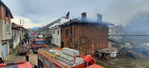 İki katlı evden dumanların yükseldiğini görenler durumu hemen itfaiyeye haber verdi.
