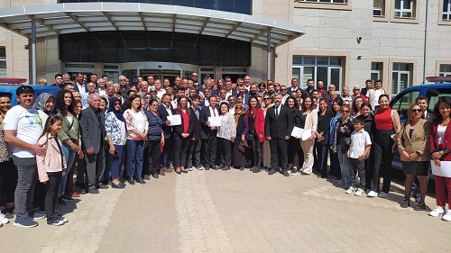 Burada çekilen hatıra resimlerinden sonra kalabalık eşliğinde Belediyeye geçildi.