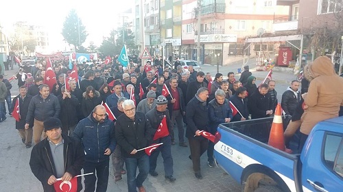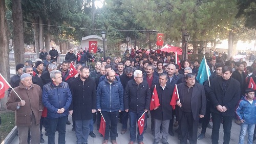 Buradan hareket eden topluluk, Şehitler ölmez, vatan bölünmez, vatan canım sana feda, sloganları eşliğinde Acıpayam Garnizon Şahitliğine varıldı.