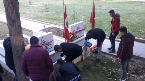 Şehitlikte, şehitlerimiz için dualar okundu. Gençler şehitlikte çevre düzenlemesi yaptılar.
