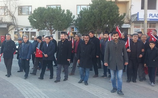 Acıpayam'da düzenlenen "Teröre Lanet Yürüyüşü" ne türk bayrağını alan geldi.