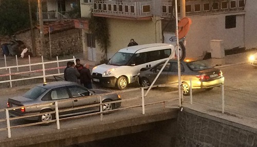 Akşam saatlerinde Sanayi yönünden Pazaryeri istikametine ilerleyen hafif ticari araç kanal caddesine geldiğinde çarşı yönünden gelen otomobil ile çarpıştı.